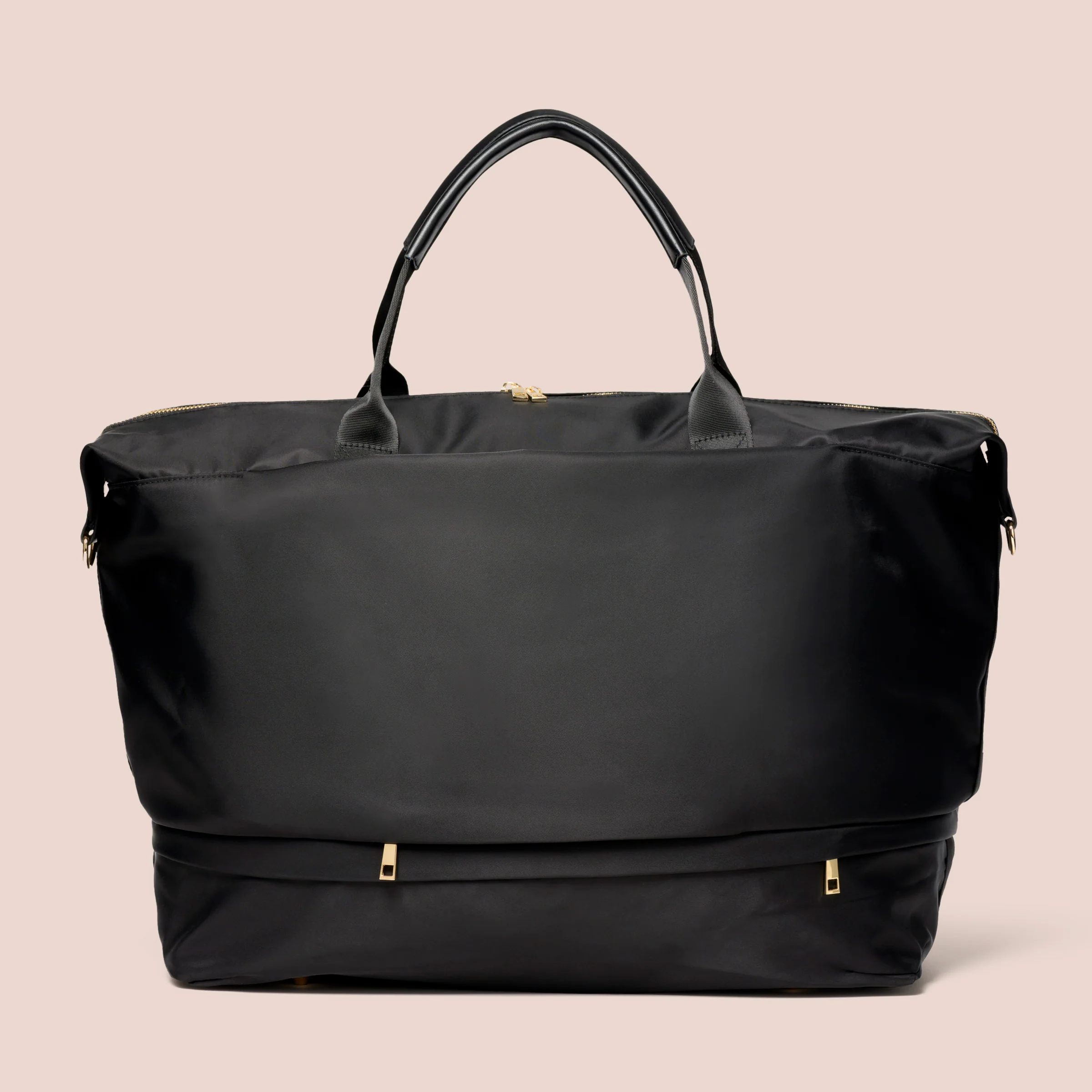 Includes an expanding zippered compartment to increase the height of the bag.Â